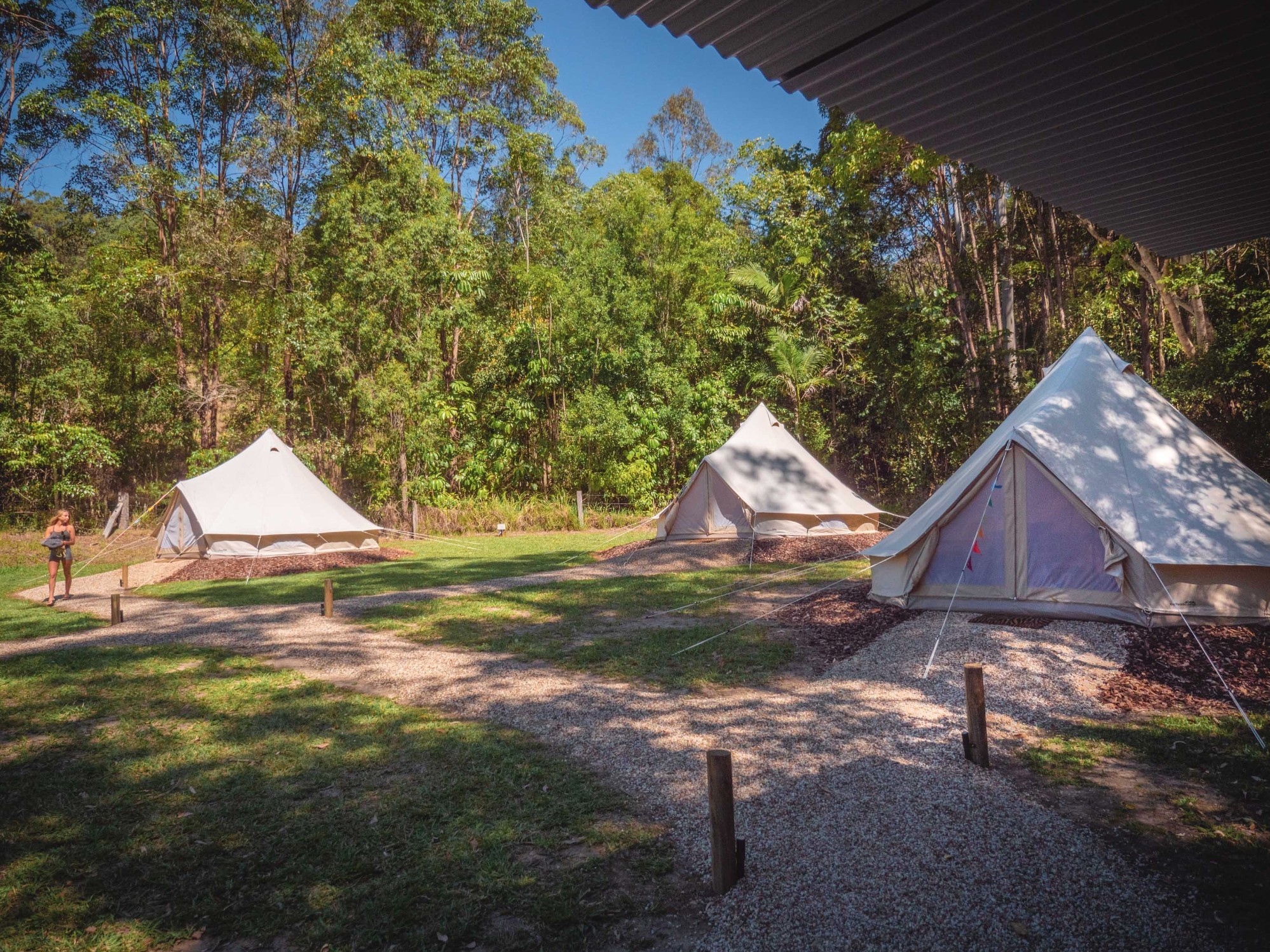 Each accommodation is spread out over the 44 acres, enabling privacy for each guest. Acess by our unsealed road system to each accommodation and a short 300m walk to the bell tents from the allocated parking.